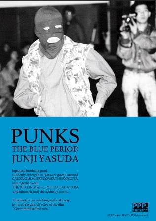 フロントには大きくなった縦長英字ポスターデザイン、背中には書籍「パンクス青の時代」の目次が英字プリントされている。
