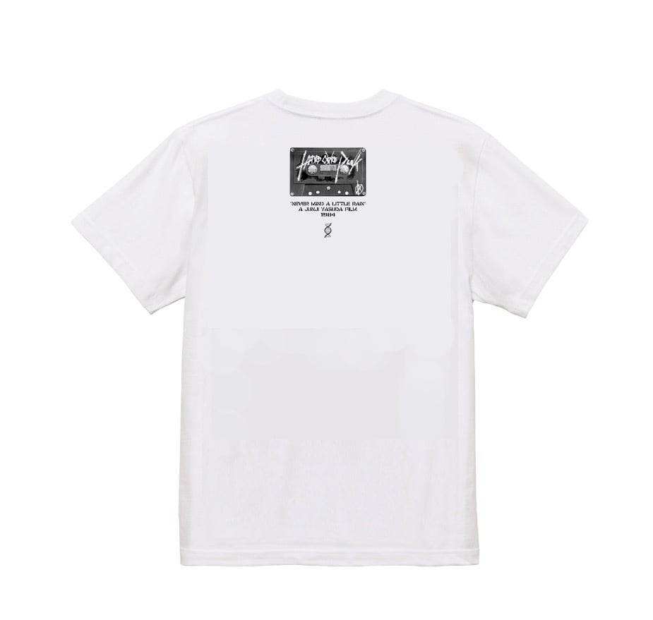 要望の多かった「ちょっとの雨ならがまん」Tシャツに初のカープリントが登場。映画「ちょっとの雨ならがまん」の本編から抜き出した画像にカラーペイント、背中には当時のカセットテープをコラージュした「ちょっとの雨ならがまん」の NEW デザイン T シャツ