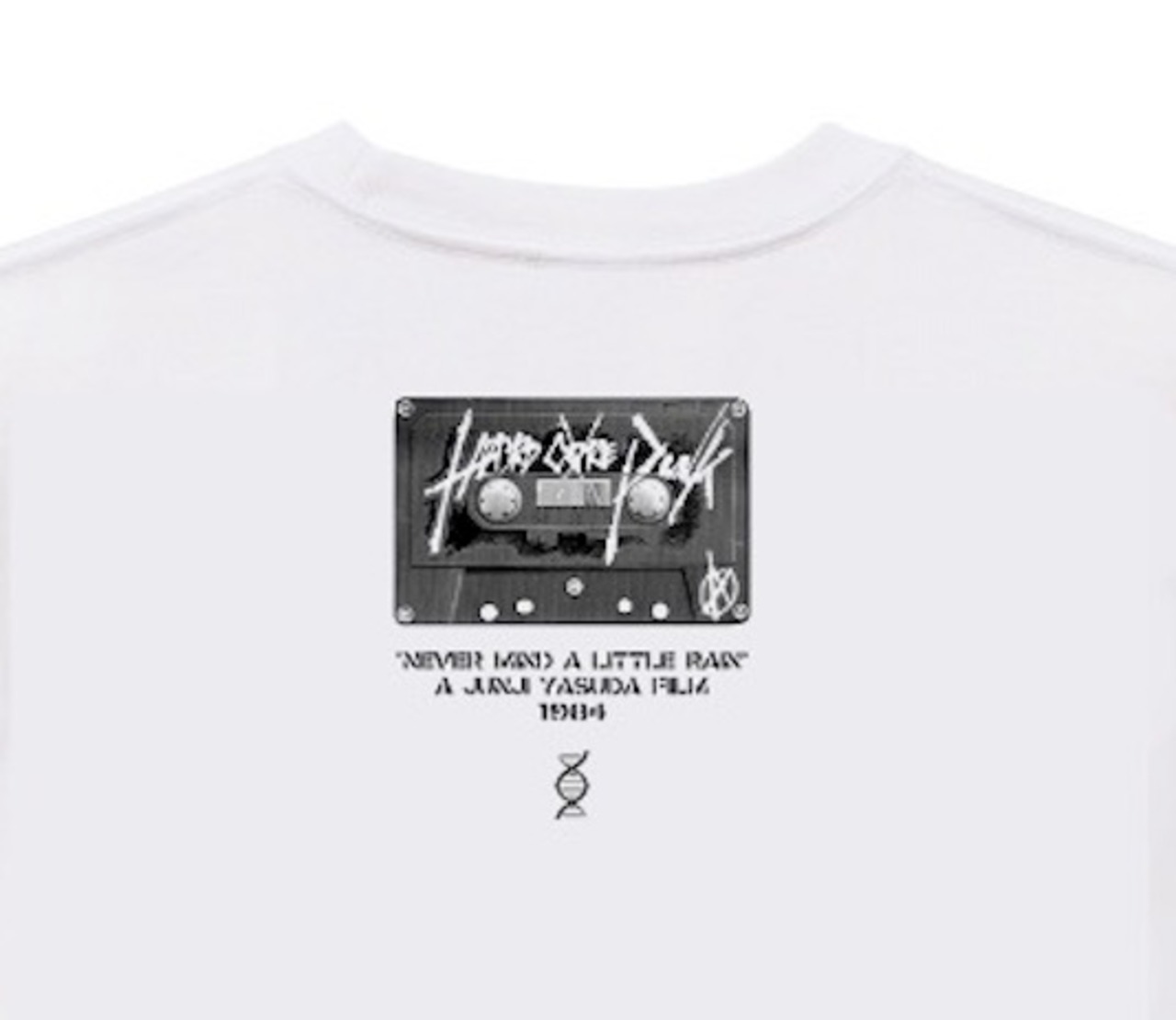 要望の多かった「ちょっとの雨ならがまん」Tシャツに初のカープリントが登場。映画「ちょっとの雨ならがまん」の本編から抜き出した画像にカラーペイント、背中には当時のカセットテープをコラージュした「ちょっとの雨ならがまん」の NEW デザイン T シャツ。